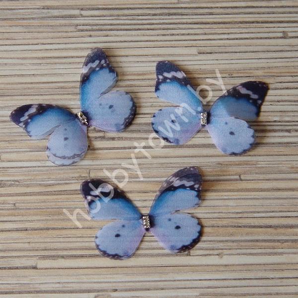 Бабочка шифоновая двухслойная со стразами, 45 мм (цв. 36) 1шт.