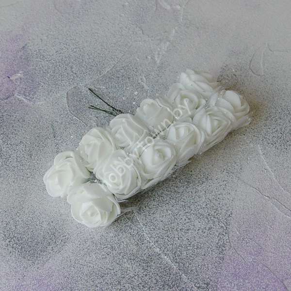Букетик роз из фоамирана с фатином 25 мм (цв.белый) 12 шт.