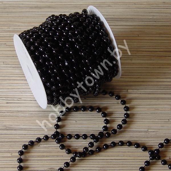Бусины 6 мм на нитке под жемчуг (цв. чёрный) 1 метр