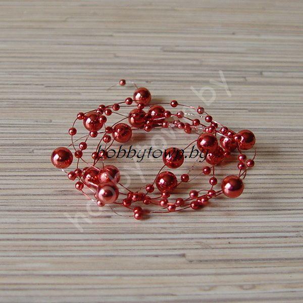 Бусины на леске 3/8мм (длина 1,20 метра) цв. красный металлик