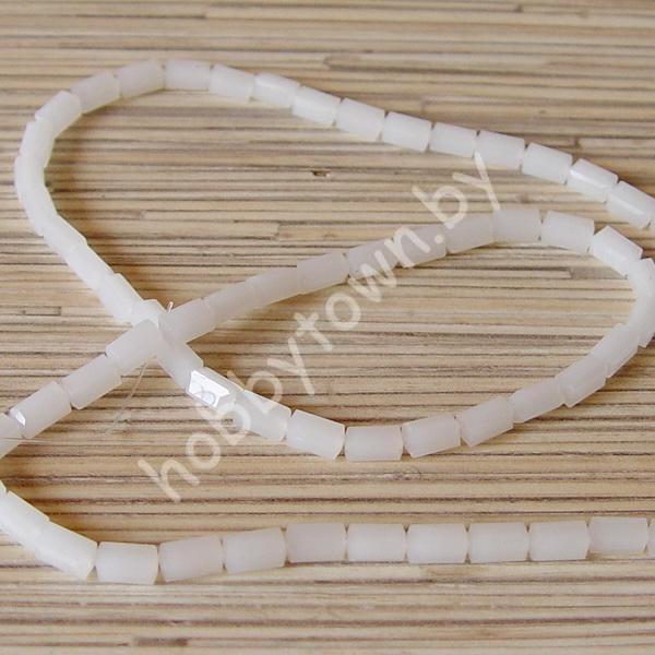 Бусины стеклянные, матовые прямоугольные 4*8 мм 1 шт. (цв. белый)