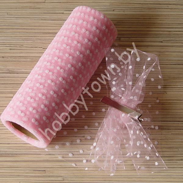 Фатин средней жёсткости в горошек , ширина 15 см (цв.розовый) 1 метр