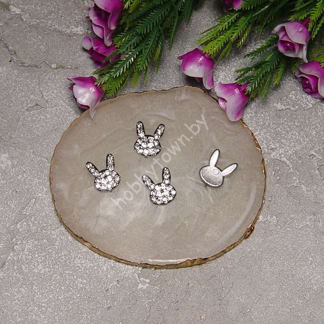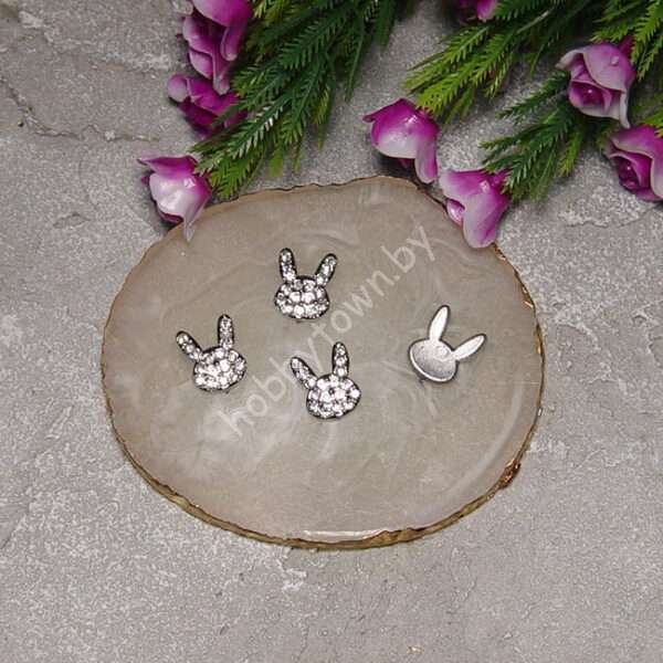 Кабошон флоризель Зайка пластик 16×11 мм (цв. серебро) 1 шт.