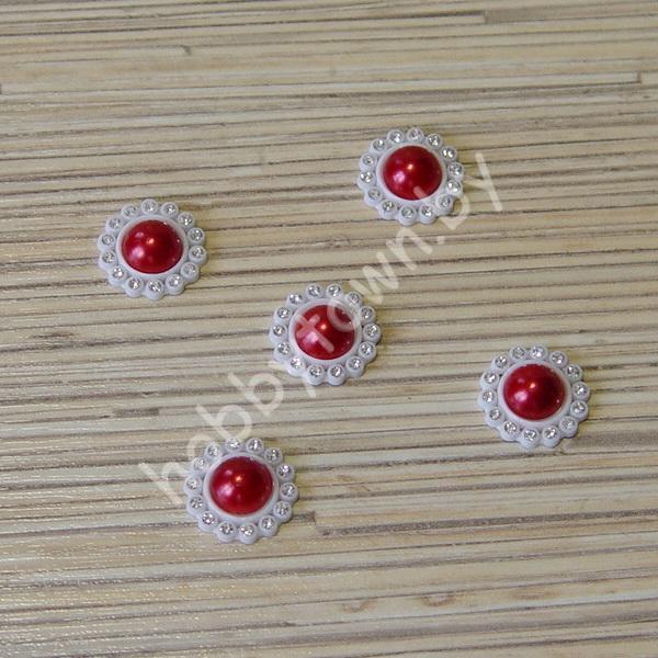 Кабошон-серединка со стразами 18 мм (цв. красный) 1шт.