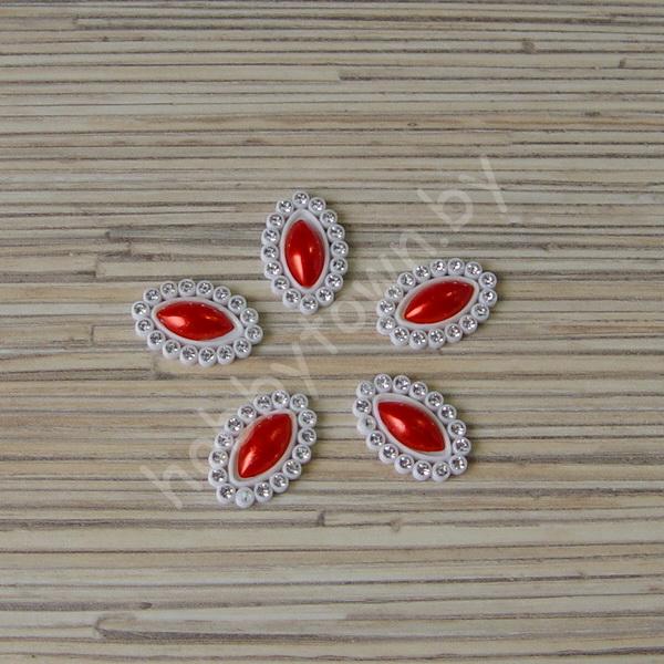 Кабошон-серединка со стразами 24×16 мм Овал заостренный (цв. красный) 1шт.