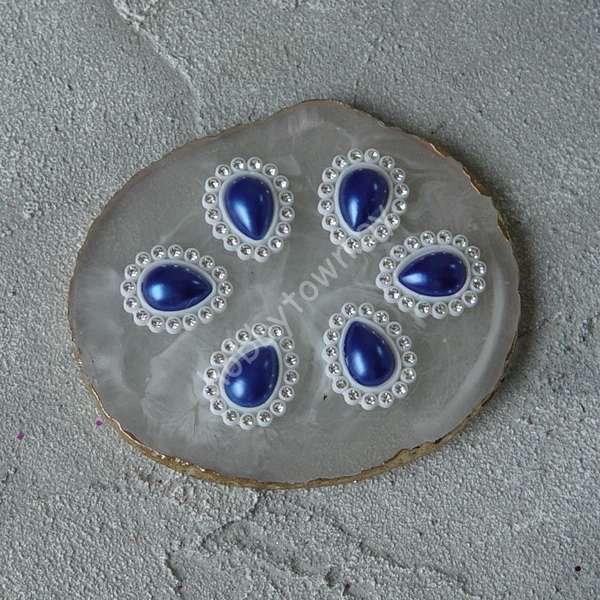 Кабошон-серединка со стразами «Капля» 22×18 мм (цв. синий) 1 шт.