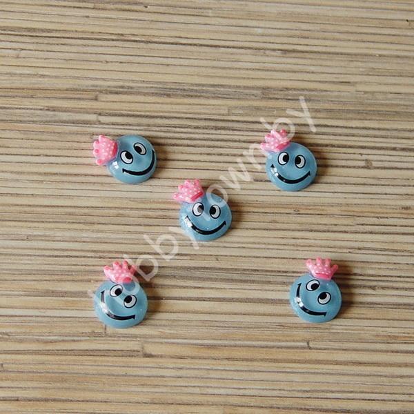 Кабошон Смайлик с короной 16мм (цв. голубой) 1 шт.