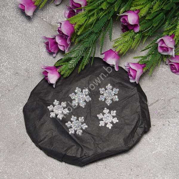 Кабошон “Снежинка” 16 мм (цв. прозрачный с блёстками) 1 шт.