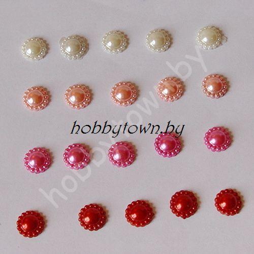 Кабошон “Цветочек” перламутровый 12мм (персиковый,кремовый, розовый, красный) 10 шт.