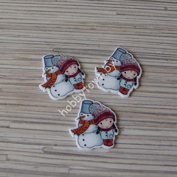 Кабошон-вырубка Снеговик с девочкой, 32×34 мм 1шт.