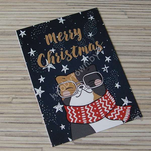 Карточка “Merry Christmas кот в шарфике” 7×10 см
