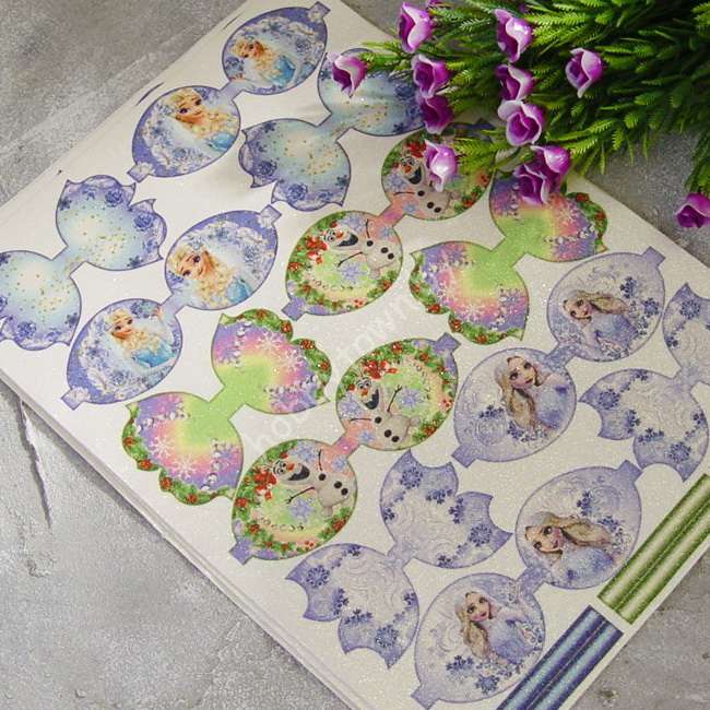 Кожзам – шаблон для бантиков с блестками Холодное сердце лист А4