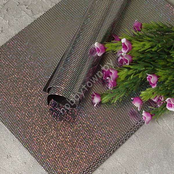Кожзам текстурный голографик “Ромбики” (цв. чёрный/серебро 1В)
