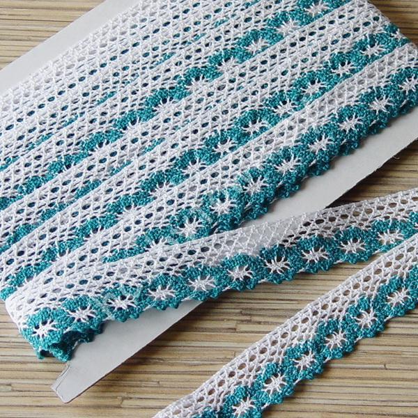 Кружево хлопковое, ширина 28 мм. (цв.белый/бирюзовый) 1 м