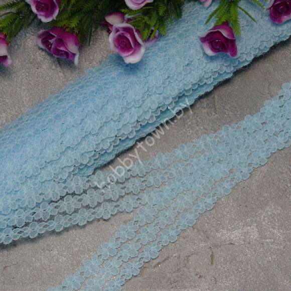 Кружево капрон Цветочки 25 мм, (цв. голубой ) 1 м
