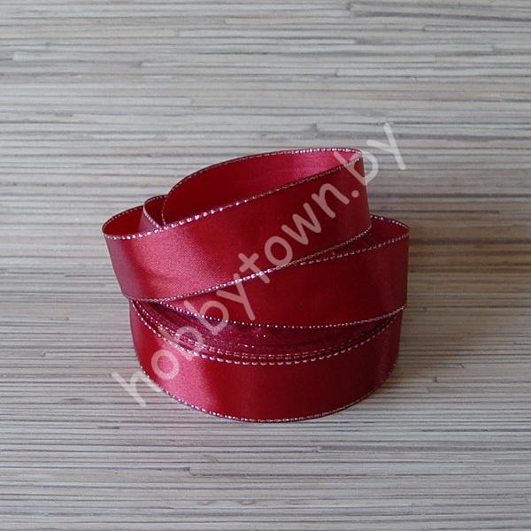 Лента атласная 25 мм с серебряным люрексом (цв.бордовый 033) 1м