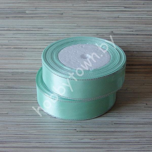 Лента атласная 25 мм с серебряным люрексом (цв.мятный 1305) 1 м