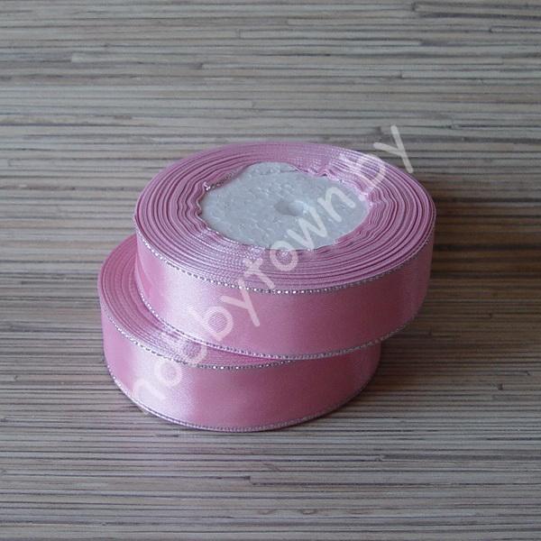 Лента атласная 25 мм с серебряным люрексом (цв.розовый 093) 1 м