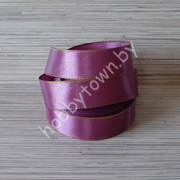 Лента атласная 25 мм с золотым люрексом (цв.сливовый 171) 1 м