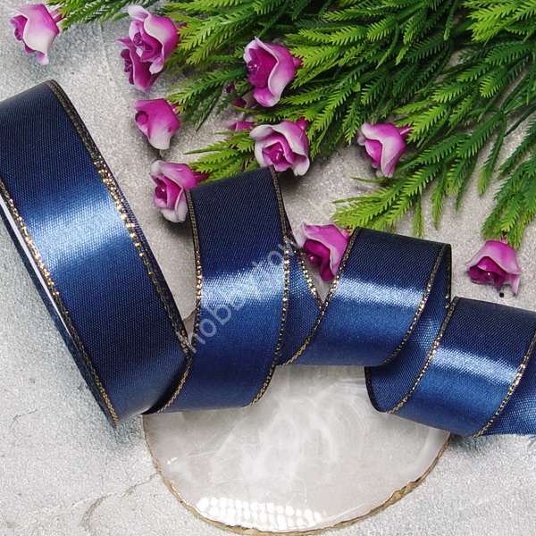 Лента атласная 25 мм с золотым люрексом (цв. тёмно-синий 038) 1 м