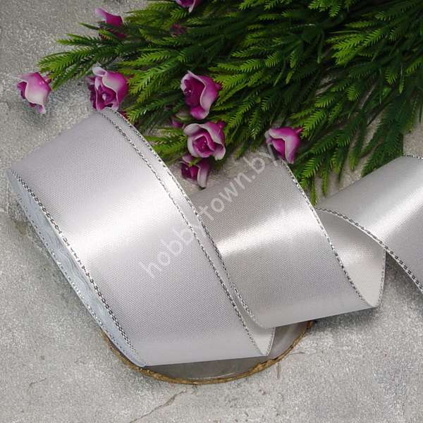 Лента атласная 40 мм с люрексом серебро (цв.белый 01) 1 м