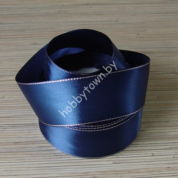 Лента атласная 40 мм с серебряным люрексом (цв.насыщенно-синий) 1 м