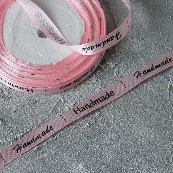 Лента атласная HAND MADE 10 мм (цв. розовый) 1 м