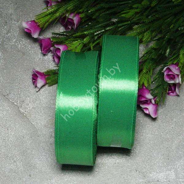 Лента атласная однотонная, ширина 25 мм, (цв. зелёный 019) 1 метр