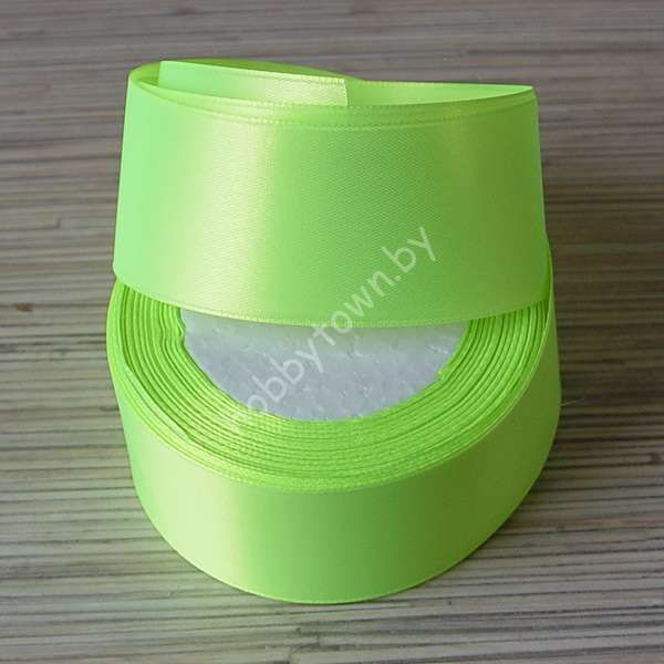 Лента атласная однотонная, ширина 40 мм, (цв. лаймовый 057)