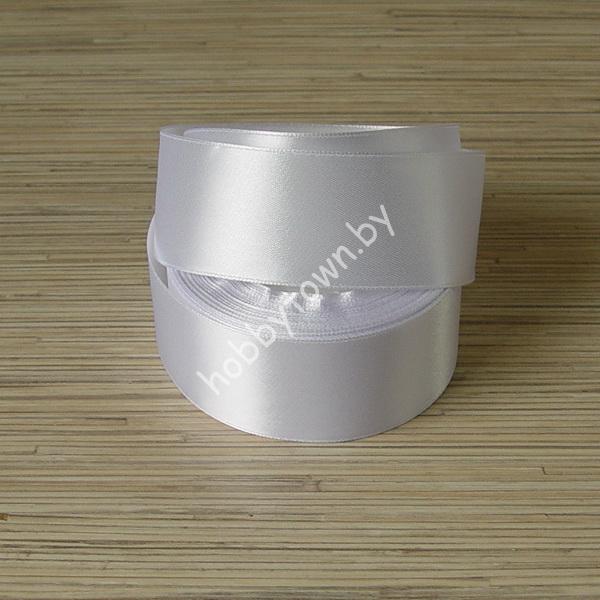 Лента атласная однотонная, ширина 40 мм, (цв. белый 01)