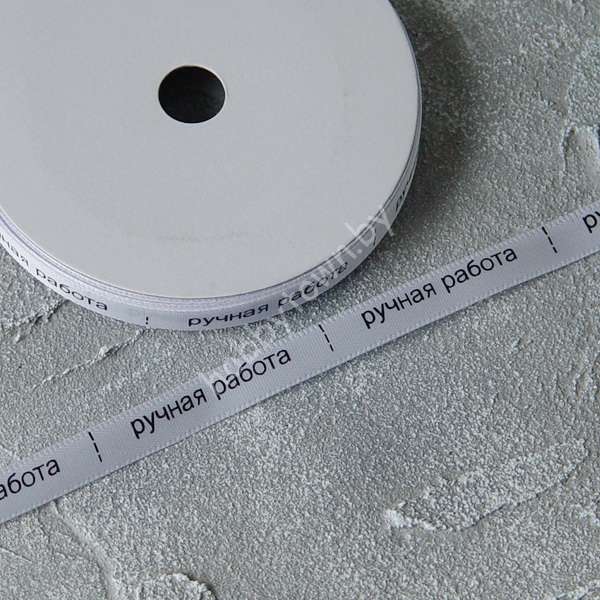 Лента атласная Premium “Ручная работа” 10 мм (цв. белый) 1 м
