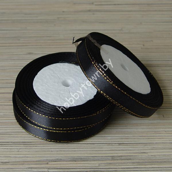 Лента атласная с люрексом 1,2 см (цв.черный/золото) 1м
