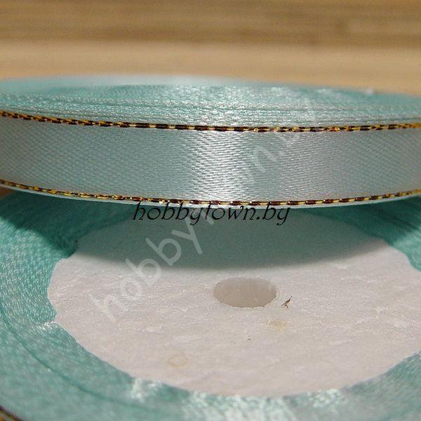 Лента атласная с золотым люрексом 1,2 см (цв.голубой)