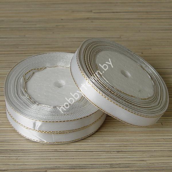 Лента атласная с люрексом 1,2 см (цв.белый/золото) 1 м