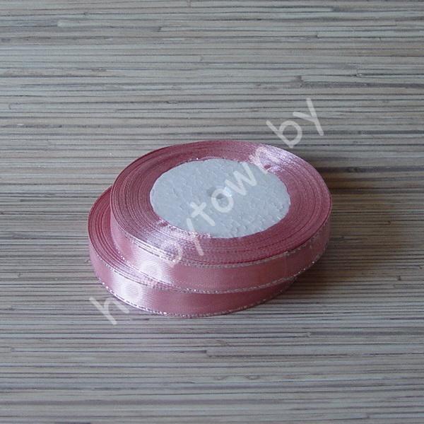 Лента атласная с люрексом серебро 1,2 см (цв.пыльно-розовый) 1м