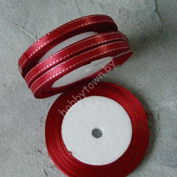 Лента атласная с серебряным люрексом 0,6 см (цв.бордовый 033)