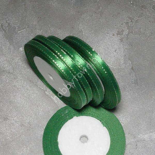 Лента атласная с серебряным люрексом 0,6 см (цв.зелёный 019)