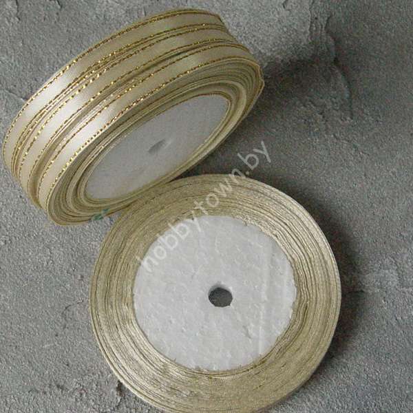 Лента атласная с золотым люрексом 0,6 см (цв. айвори 083)