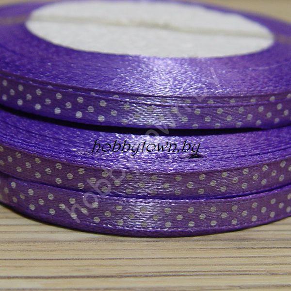 Лента атласная в горошек 0,6см (цв.фиолетовый)