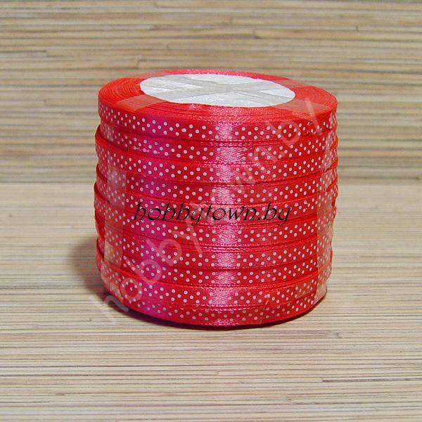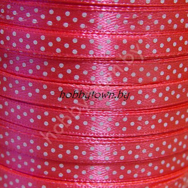 Лента атласная в горошек 0,6см (цв.коралловый)