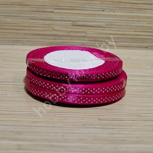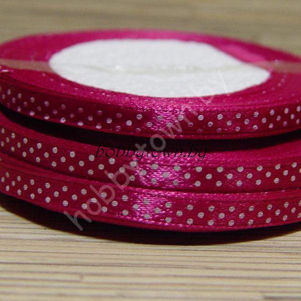 Лента атласная в горошек 0,6см (цв.малиновый)