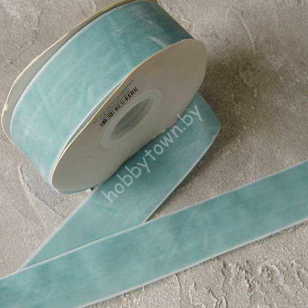 Лента бархатная 4 см (цв. аквамариновый 66) 1 метр