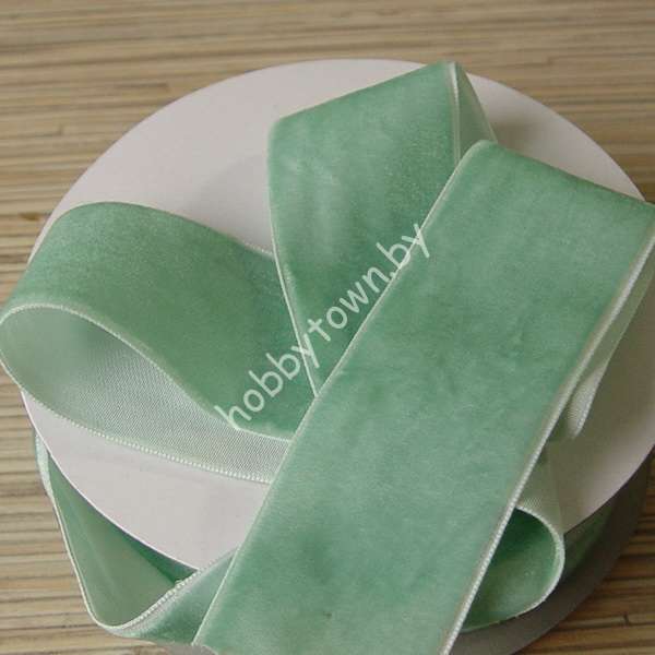 Лента бархатная 4 см (цв. мятный 46) 1 метр