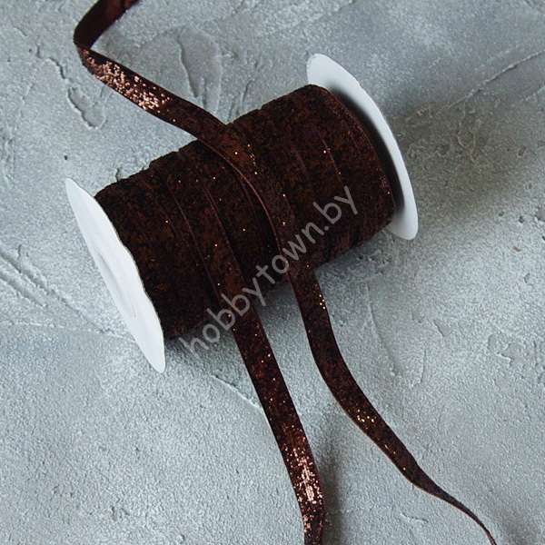 Лента бархатная с люрексом 1 см (цв. шоколадный 14) 1 метр