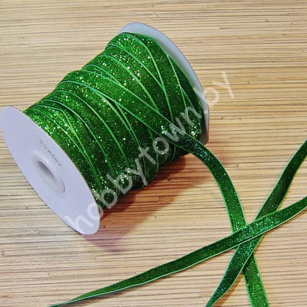Лента бархатная с люрексом 1см (цв.зелёный) 1 метр