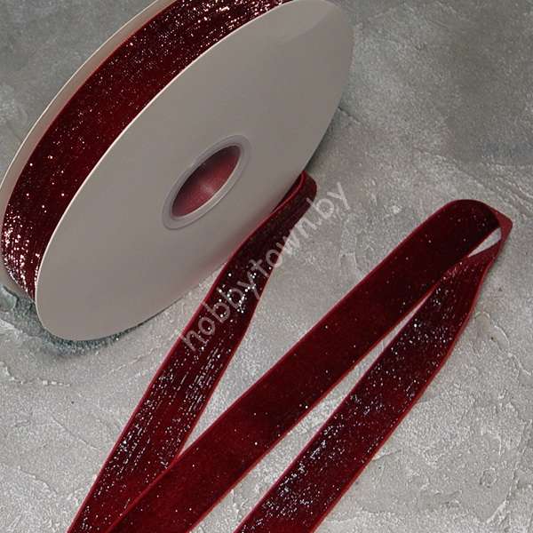 Лента бархатная с люрексом 2,5 см (цв. бордовый 119) 1 метр