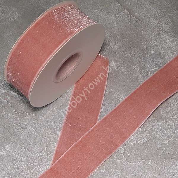 Лента бархатная с люрексом 4 см (цв. нежно-розовый 15) 1 метр
