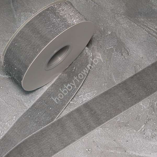 Лента бархатная с люрексом 4 см (цв. серый 182) 1 метр