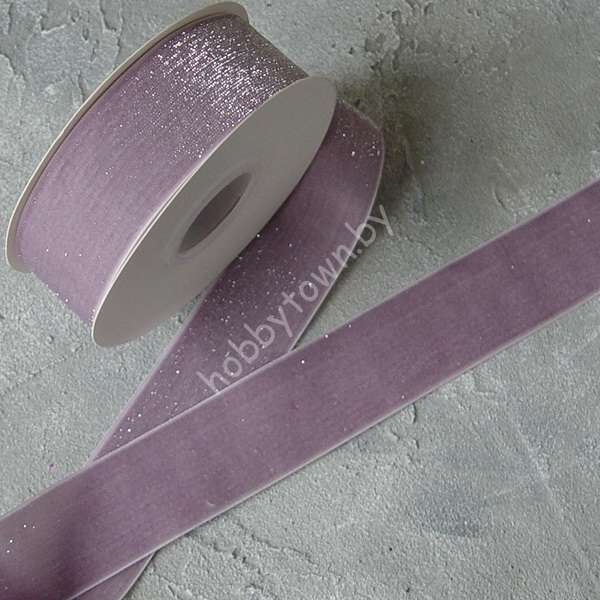 Лента бархатная с люрексом 4 см (цв. сиреневый 82) 1 метр