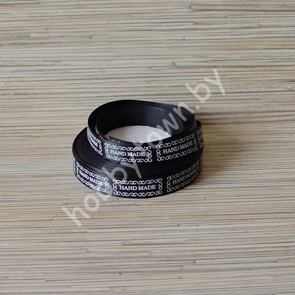 Лента декоративная атласная HAND MADE 15 мм ( цв. чёрный) 1 метр